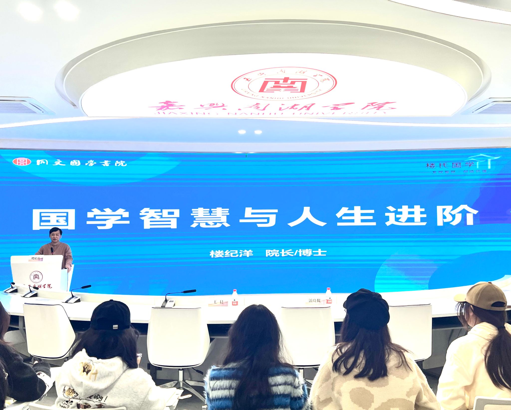为传承和弘扬中华优秀传统文化,探讨国学智慧,助力个人成长与人生进阶,11月7日晚,英国beat365官方网站在学校新文科综合改革基地演播厅举办“国学智慧与人生进阶”讲座。本次讲座是学院文心讲堂系列活动之一,邀请到知名国学学者、易学名家、杭州同文国学院院长楼纪洋主讲。学院党委书记王晨、部分教师代表、2024级汉语言文学专业学生参加讲座。讲座由新文科综合改革基地办公室主任潘晓侃主持。