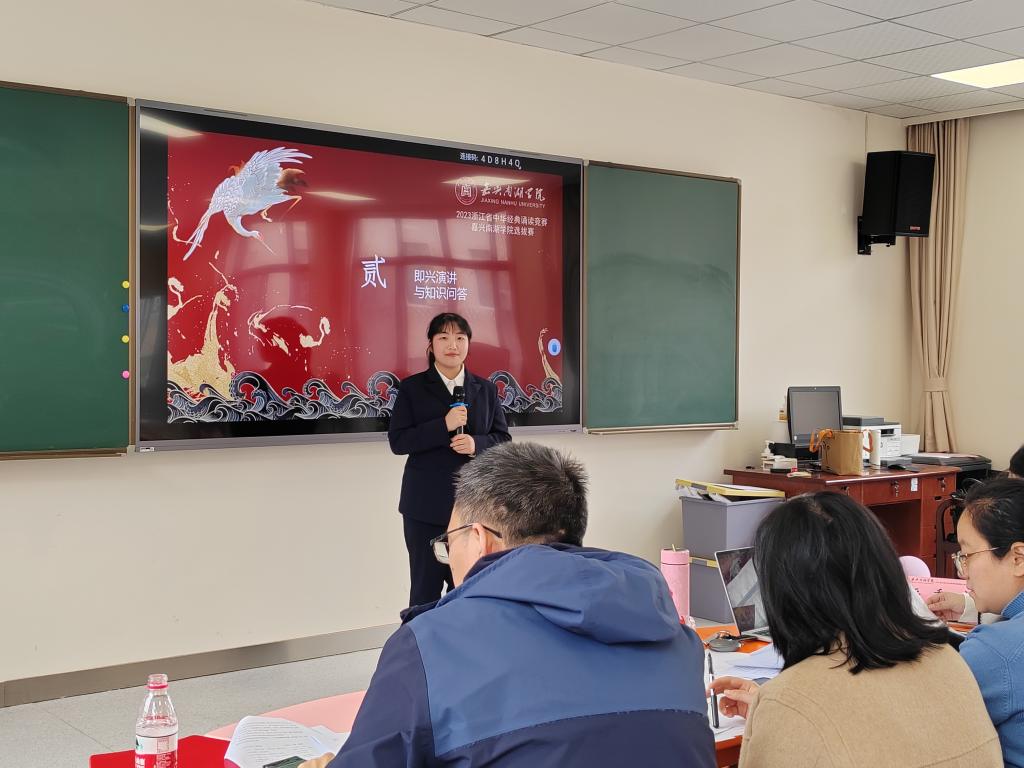 此次比赛,经过初选,包括工商、人力、金融、思政等13个专业的25名进入最后决赛环节。在老师们的悉心指导下,选手们积极备赛,认真研读诗文,诠释自己对经典诗文的热爱。决赛现场,竞赛组邀请秘书学专业赵洪等四名老师作为评委老师,5名往届获奖选手作为学生评委,经过评委团认真评审,杨自豪、朱楚奕等共12名选手披荆斩棘,勇夺佳绩,并将代表学校参加浙江省第十一届大学生中华经典诵读竞赛。