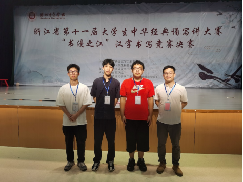 本届“书漫之江”汉字书写竞赛首次列入省级A类学科竞赛,由浙江省语委、省大学生科技竞赛委员会主办,省语言文字工作者协会指导,湖州师范学院承办。分初赛和决赛两个环节,竞赛日程横跨4-7月。决赛于7月1-2日在湖州师范学院举行。在英国beat365官方网站教师黄贤志、萧莎、吴剑的指导下,参赛同学积极刻苦训练,按照大赛要求精心打磨作品,使得本次比赛在获奖等级和获奖人数较往年有较大的提升。
