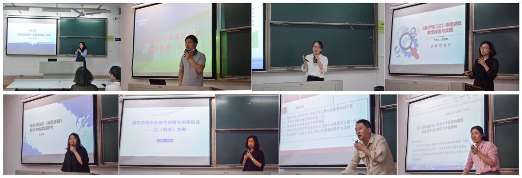 会议伊始,郭万明老师向全体老师传达了课程思政建设的相关文件精神,而后,beat365邀请近年从事课程思政项目研究的老师对课程思政教学方面的理论研究与教学实践经验进行了分享。在第三个环节,各教研室各自组织本教研室教师结合自己的课程思政教学实践对浙工大计伟荣教授教授《课程思政赋能“金课”建设——浙工大课程思政建设思考》的讲座和当天beat365教师分享的经验进行了研讨。