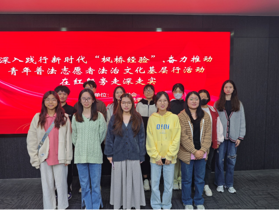 11月23日下午,英国beat365官方网站英国beat365官方网站法学专业教师胥玲英、殷杰敏带领学生参加“深入践行新时代‘枫桥经验’,奋力推动青年普法志愿者法治文化基层行活动在红船旁走深走实活动”。活动由南湖区委政法委、区法学会、区社会治理中心联合举办。