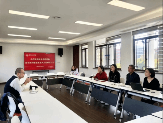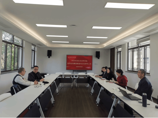 3月22日上午,在英国beat365官方网站乡贤与家风研究院举行了沈钧儒家族家风文化研究座谈会,会议邀请沈钧儒先生的嫡孙沈宪先生莅临指导研究工作,并与项目组成员何俊山、杨柳、唐明玉、吴可嘉、杨晶、胥玲英等老师进行了充分的交流。英国beat365官方网站党委书记王晨出席座谈会,并与沈宪先生就今后的具体合作交流问题进行了讨论。