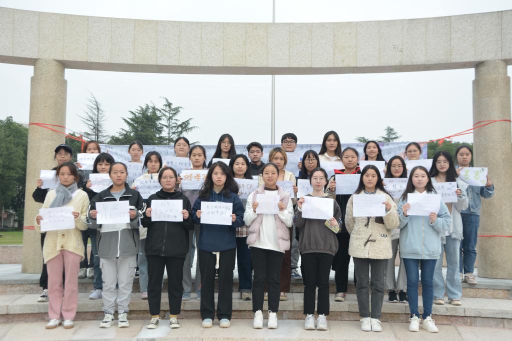 在拍摄人员及班长的组织下,活动有序开展。同学们到文化广场集合后,进行了自由组队。他们将手中的白纸写满自己的梦想和对未来的美好期许,摆出各种动作和队形进行拍摄合影留念。不仅增加了活动的趣味性,也进一步拉进了彼此之间的距离。随后,每位同学还在海报上用黑色马克笔写下自己的梦想和宣言,他们互相讨论、分享自己的梦想,畅想未来。