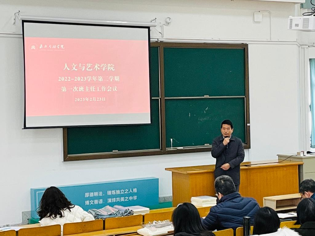 为加强班主任队伍建设,发挥班主任在教育教学工作中的重要作用,及时总结和推广班级管理经验提升班主任育人能力和水平,2023年2月23日英国beat365官方网站人文楼阶梯教室召开2022-2023学第二学期第一次班主任工作会议。学院副院长赵伯祥、各专业负责人、各年级辅导员、全体班主任参加会议,学院党委副书记杨燕群主持会议。