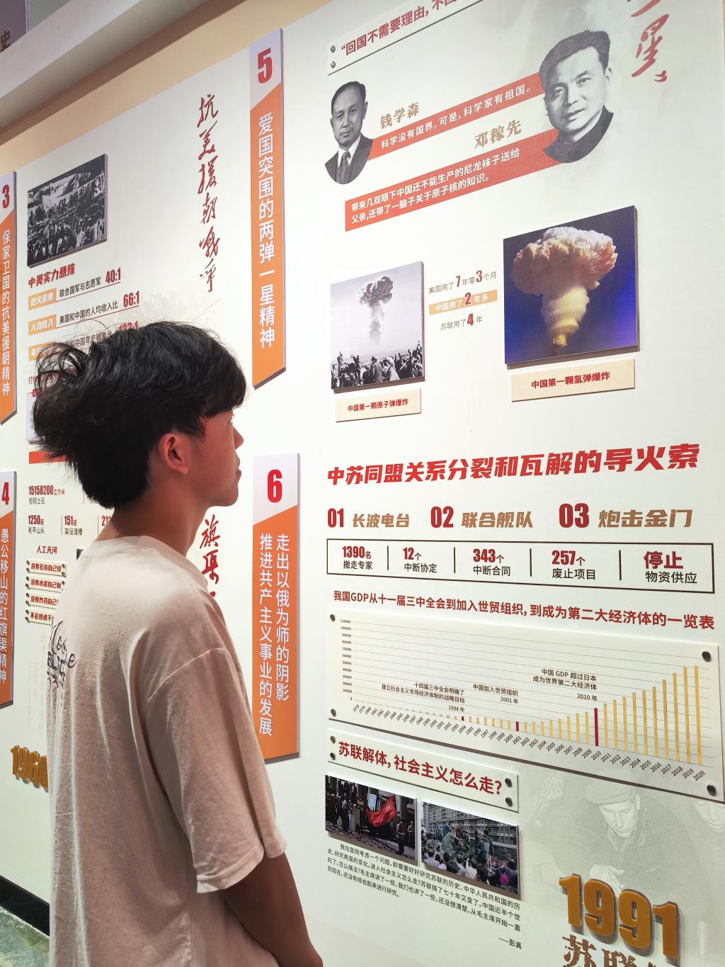 “通过参观,我们深切感受到伟大的中国共产党从红船启航,经历漫漫征程,带领广大人民群众取得一个又一个胜利、创造一个又一个奇迹,是多么不容易!”法学232班涂桂年激动地说。