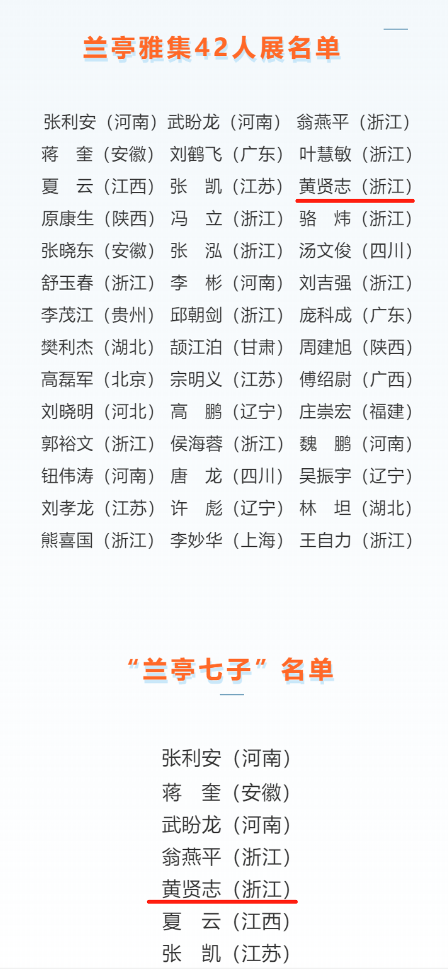 3月14日至16日,由中共浙江省委宣传部、浙江省文联、绍兴市人民政府联合主办的第六届中国书坛兰亭雅集42人展、“兰亭七子”评审工作在绍兴举行。经过三个阶段的评审,beat365黄贤志老师同时入选兰亭雅集42人展名单和“兰亭七子”名单。