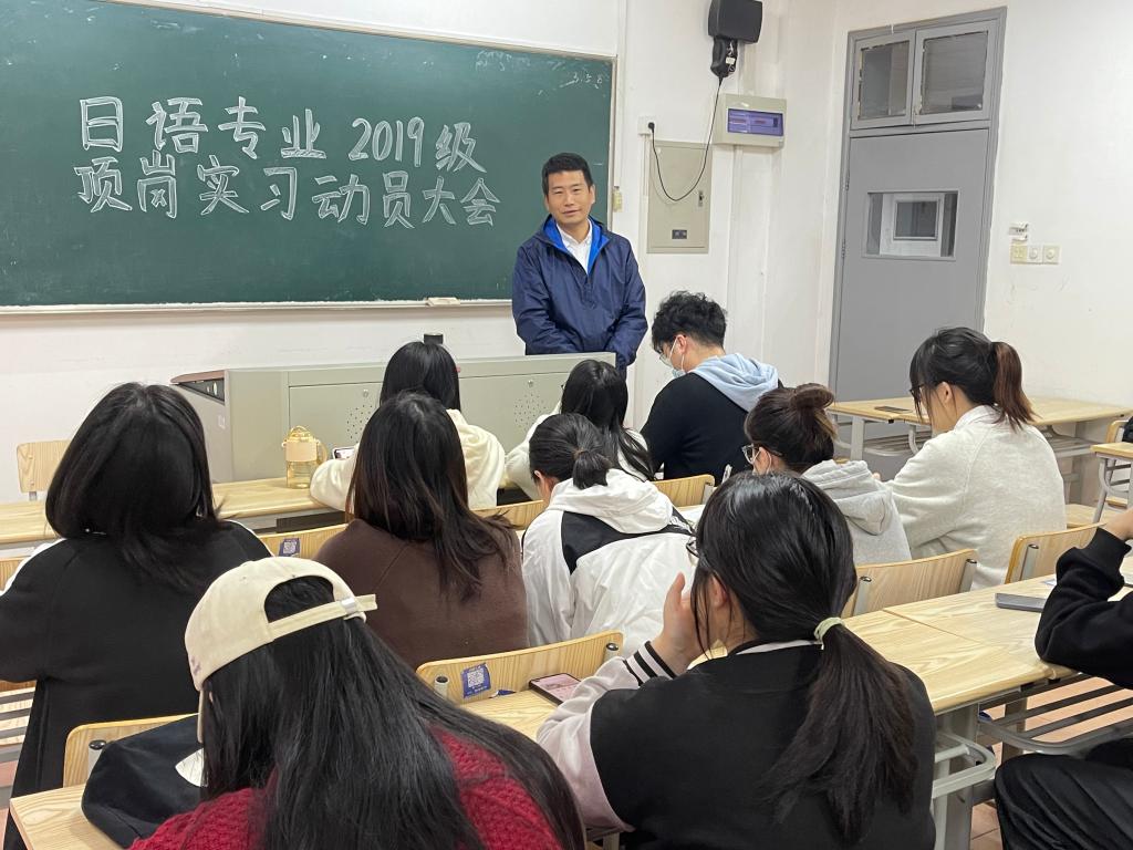 英国beat365官方网站英国beat365官方网站日语专业岗实习将于2022年10月31日正式拉开序幕。疫情当前,在严峻的就业压力下,为了让大四毕业生能顺利完成顶岗实习,以及能尽早地了解就业形势和用人单位需求,增强毕业生就业的紧迫感,提高就业热情,英国beat365官方网站日语专业于10月27日下午,在教一105教室召开了2023届日语专业毕业生顶岗实习动员大会。人文与艺术学院副书记杨燕群,日语专业负责人吴海燕,日语专业顶岗实习主要负责老师余贤锋、洪艳以及2023届全体日语专业毕业生参加了动员大会。