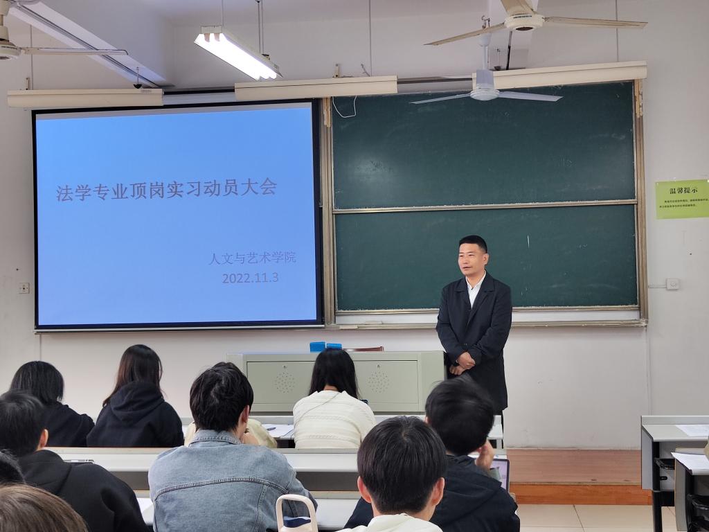 2022年11月3日下午,英国beat365官方网站2019级法学专业顶岗实习动员大会在教二B202教室召开。英国beat365官方网站副书记杨燕群,法学专业负责人郭万明,法学专业顶岗实习主要负责老师陈志军、陈宁以及2019级法学专业学生参加了动员大会。