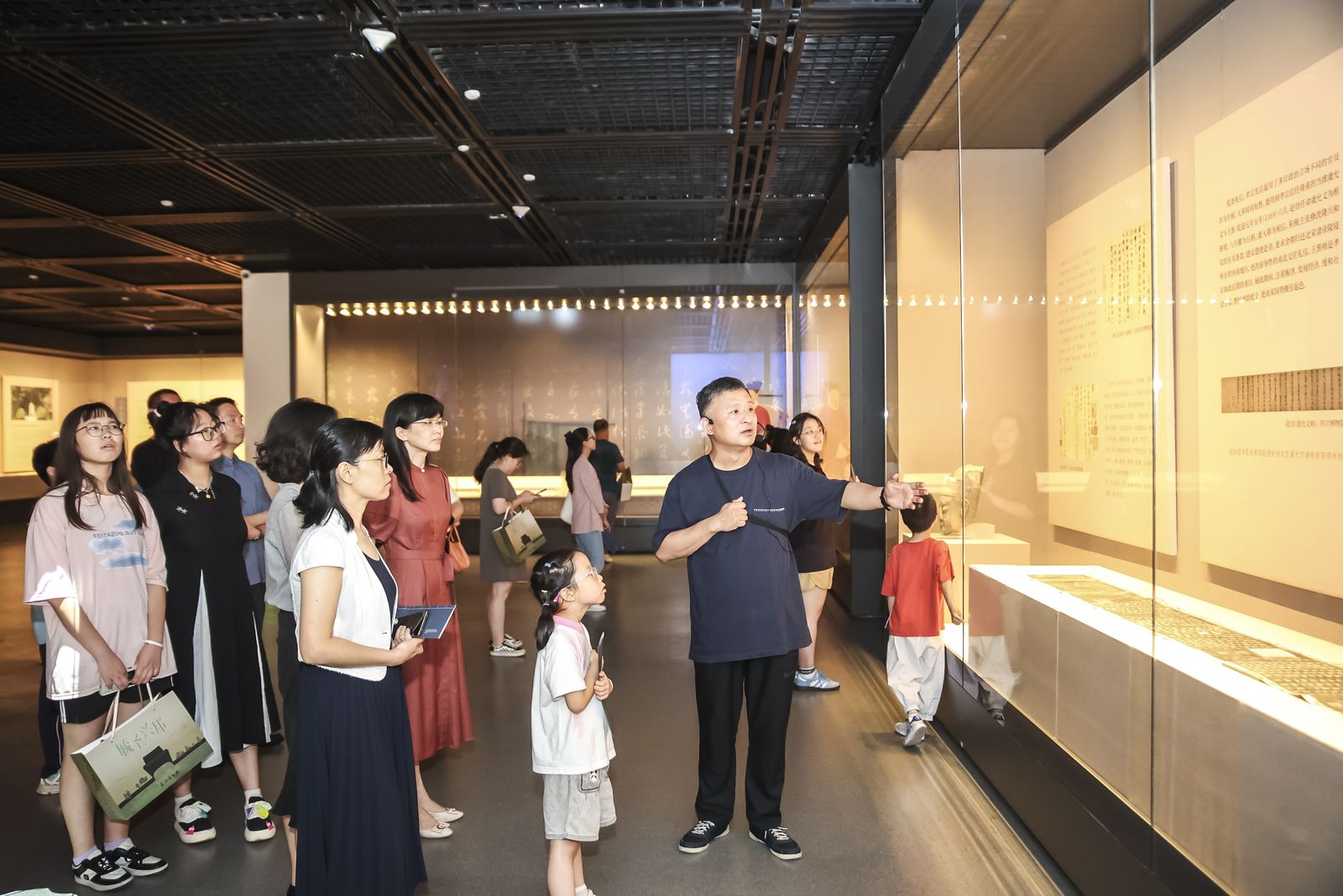 特展集中了将近百件来自海内外公私收藏的文物精品,包括多件宋孝宗本人难得一见的榜书碑刻和题扇手诏,如为抗金名将韩世忠题写的神道碑,以及苏轼在嘉兴留下的《三过本觉文长老诗》书迹与大名鼎鼎的《马券帖》。一件件风雅的士大夫书画、庄重的宋代官印、惟妙惟肖的文武陶俑、素雅的茶酒瓷器……历尽沧桑的文物如长卷上的明珠,配合展板展签的历史人物故事解说与精致大气的展陈布置,令前来参观的市民大饱眼福。