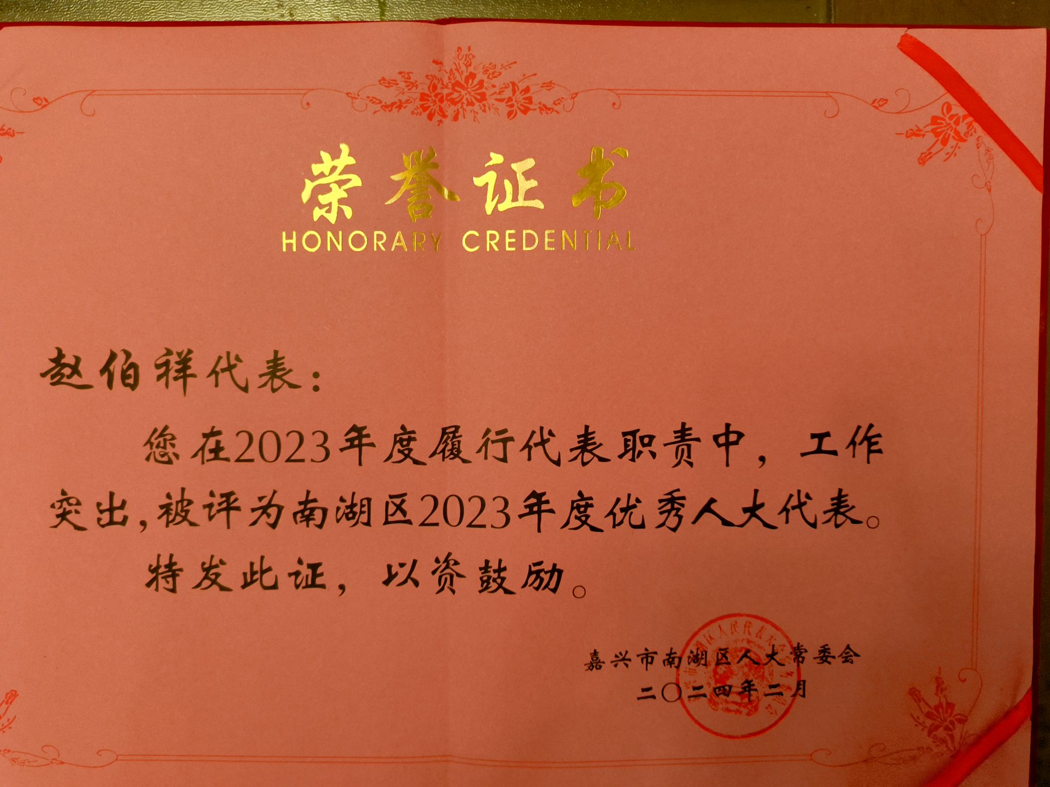 2024年2月4日-5日,在嘉兴市南湖区第十届人民代表大会第三次会议召开期间,beat365副院长赵伯祥教授因履职优秀,被评为2023年度南湖区优秀人大代表。