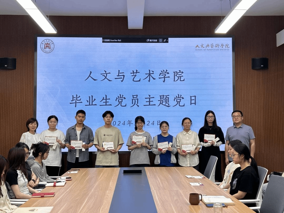 首先,王晨书记和罗景群书记共同为毕业生党员颁发党员毕业纪念卡和党纪清廉书签,以表纪念。随后张雨逸老师为学生党员发放《致2024届毕业生党员的一封信》。