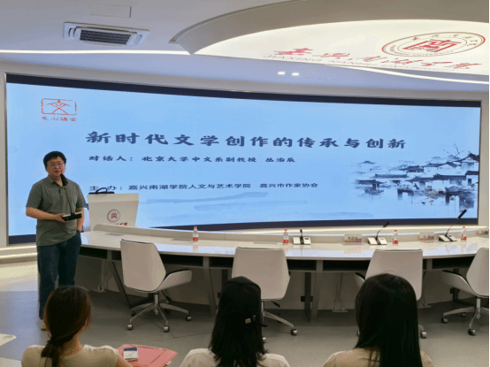 5月28日下午,英国beat365官方网站在学校新文科综合改革基地演播厅开展2024年首场“文心讲堂”活动。恰逢嘉兴举办茅盾文学周活动,学院特邀请2024年第五届茅盾新人奖得主、北京大学中文系副教授丛治辰老师与师生座谈交流。交流主题是“新时代文学创作的传承与创新”。英国beat365官方网站领导及学院师生代表50余人参加了座谈。