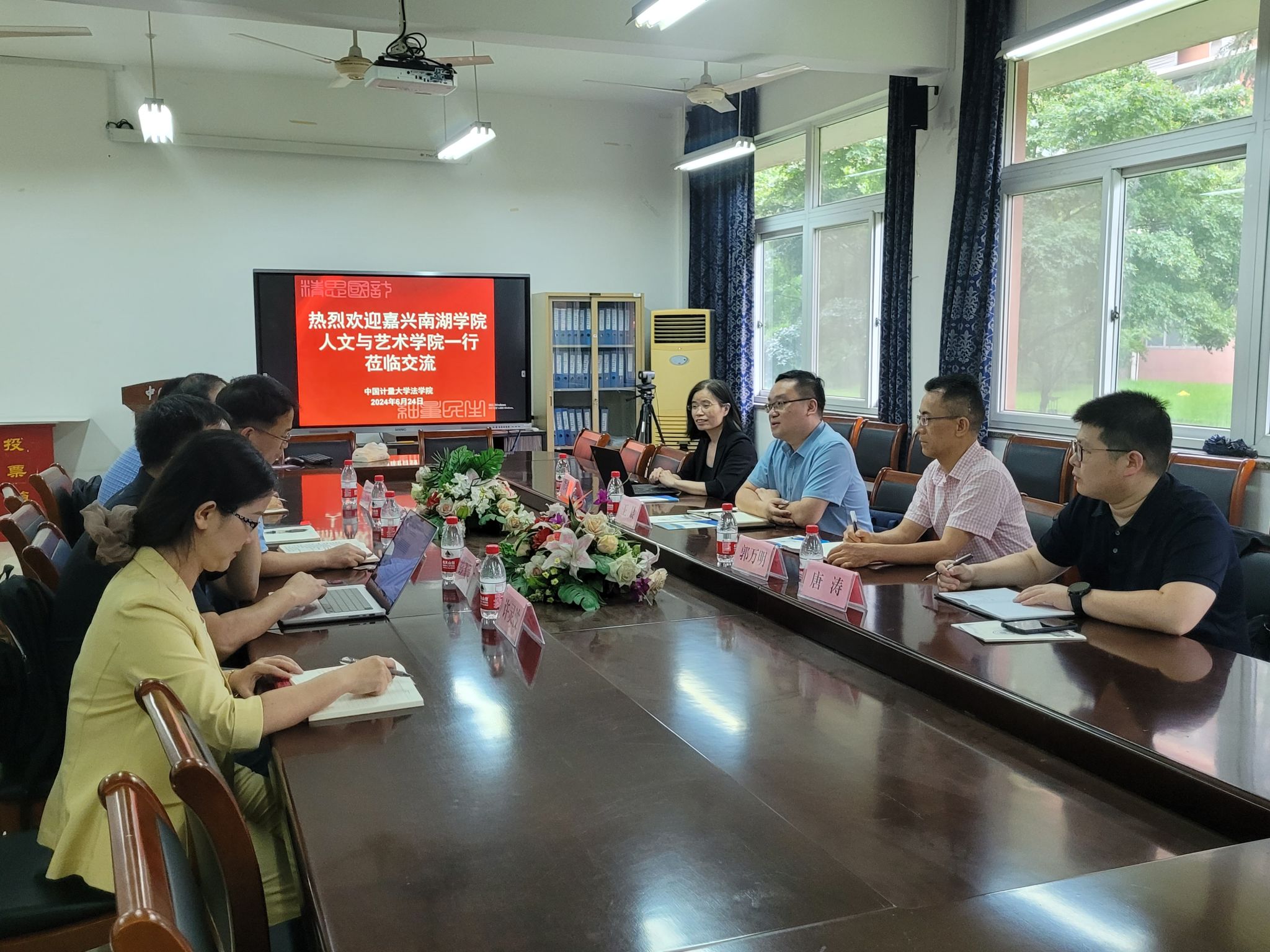 为进一步推进法学专业建设,加强知识产权人才培养和社会服务,6月25日下午,学院党委书记王晨、法学系主任郭万明、法学专业教研室主任胥玲英一行赴中国计量大学法学院(知识产权学院)调研交流。中国计量大学法学院党委书记张徐兴,副院长徐楠轩、学术副院长彭飞荣及知识产权系相关教师出席座谈会。
