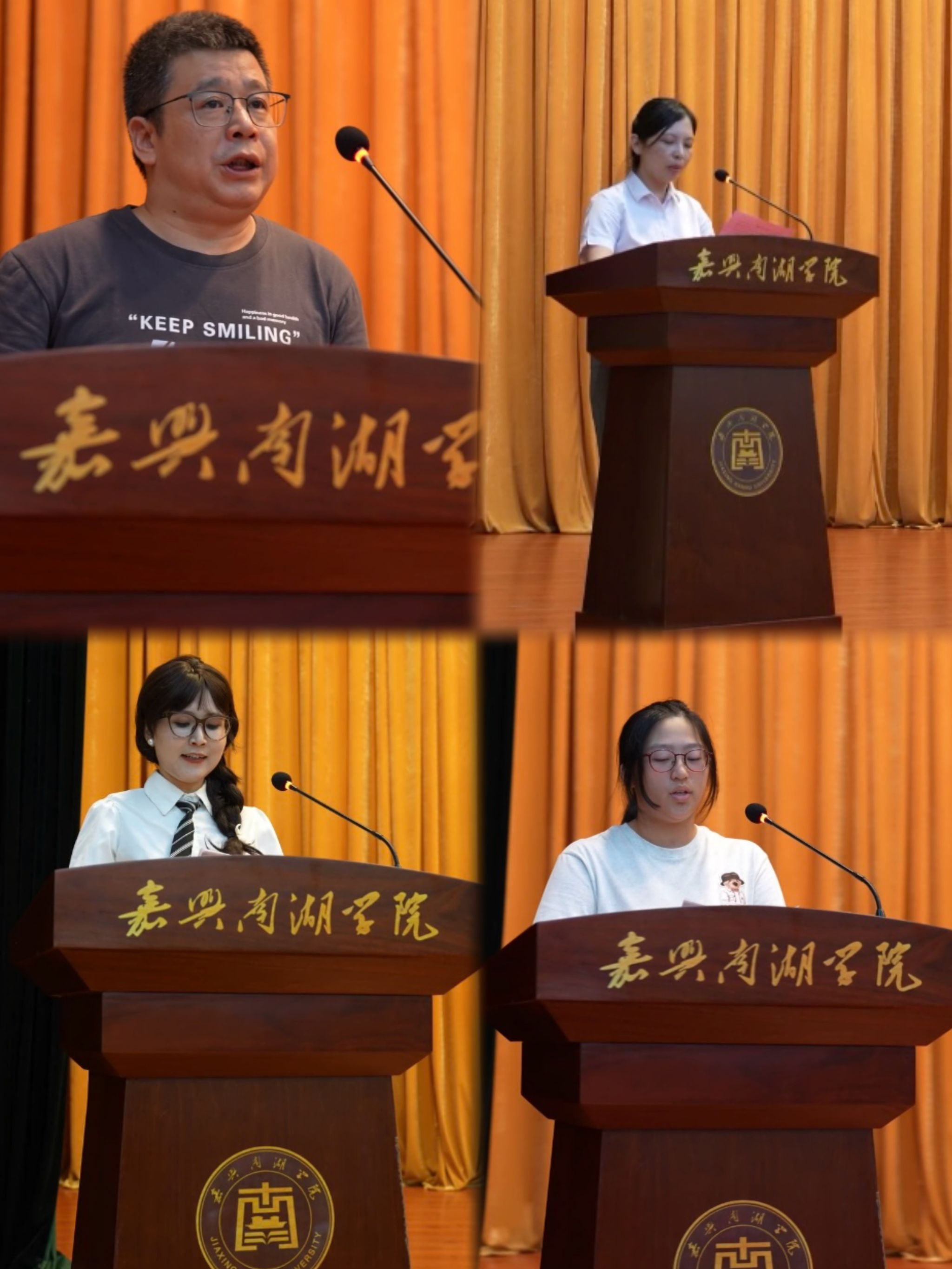 校友代表光大银行嘉兴分行副行长沈吉如表达了母校的感激之情,并对学弟学妹们给予祝福和厚望;老生代表汉语言222班哈斯叶提古丽•热西提谈及自己的感悟,与新生们共勉;新生代表法学242班叶思缘分享了自己作为新生的感受。