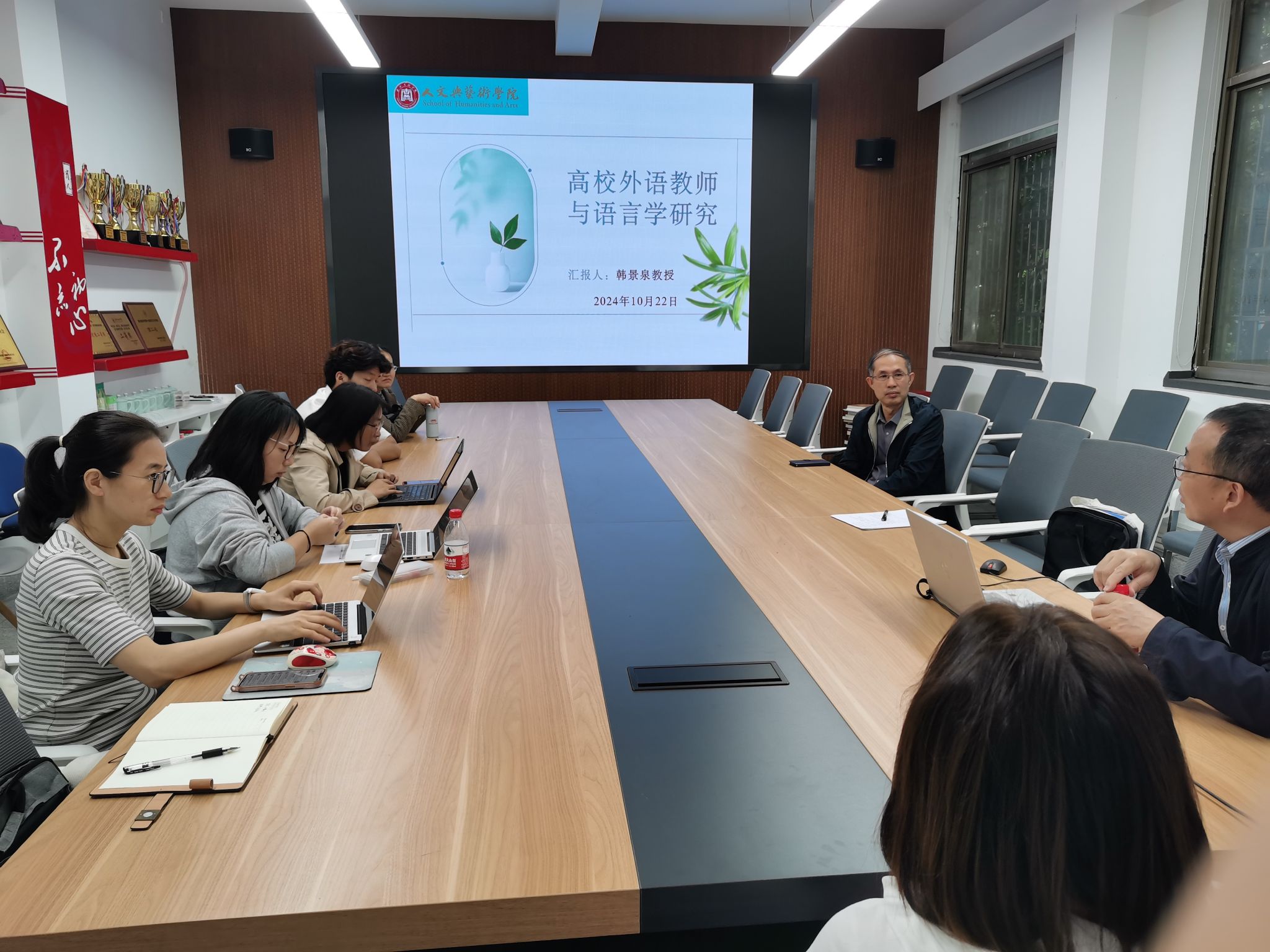 10月22日上午,广东外语外贸大学云山杰出学者、二级教授、博士生导师韩景泉教授应邀作客beat365文心讲堂,围绕“高校外语教师与语言学研究”主题为英语专业师生作学术讲座。学院党委书记王晨、英语专业全体教师、基础英语部教师及部分学生参加了本次讲座。讲座由英语专业负责人李柽杨主持。