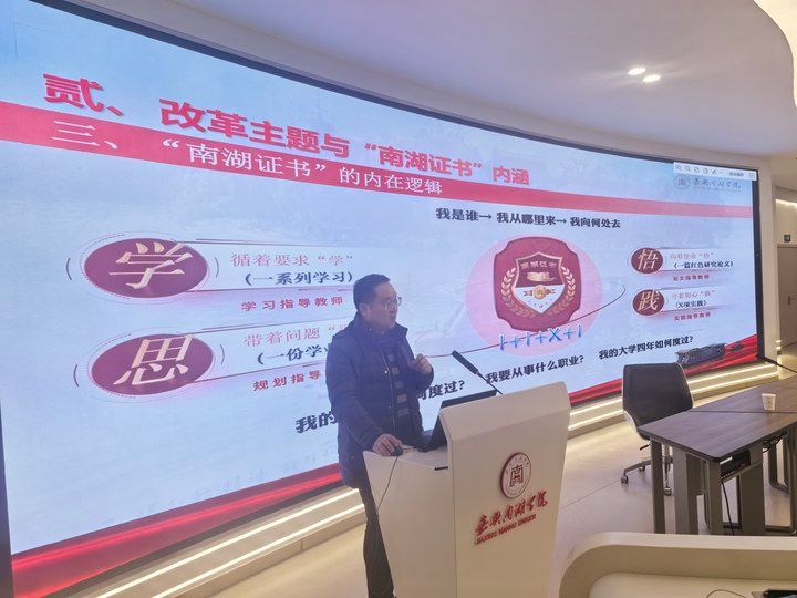 报告前,英国beat365官方网站党委书记王晨就beat365“南湖证书”育人体系推进落实情况进行介绍。