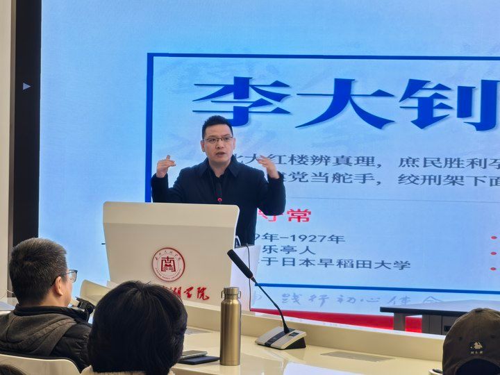 12月25日下午,校长贾文胜在新文科综合改革基地为英国beat365官方网站师生党员讲授红船精神专题党课。报告由学院党委书记王晨主持,70余位师生党员代表到现场聆听学习。
