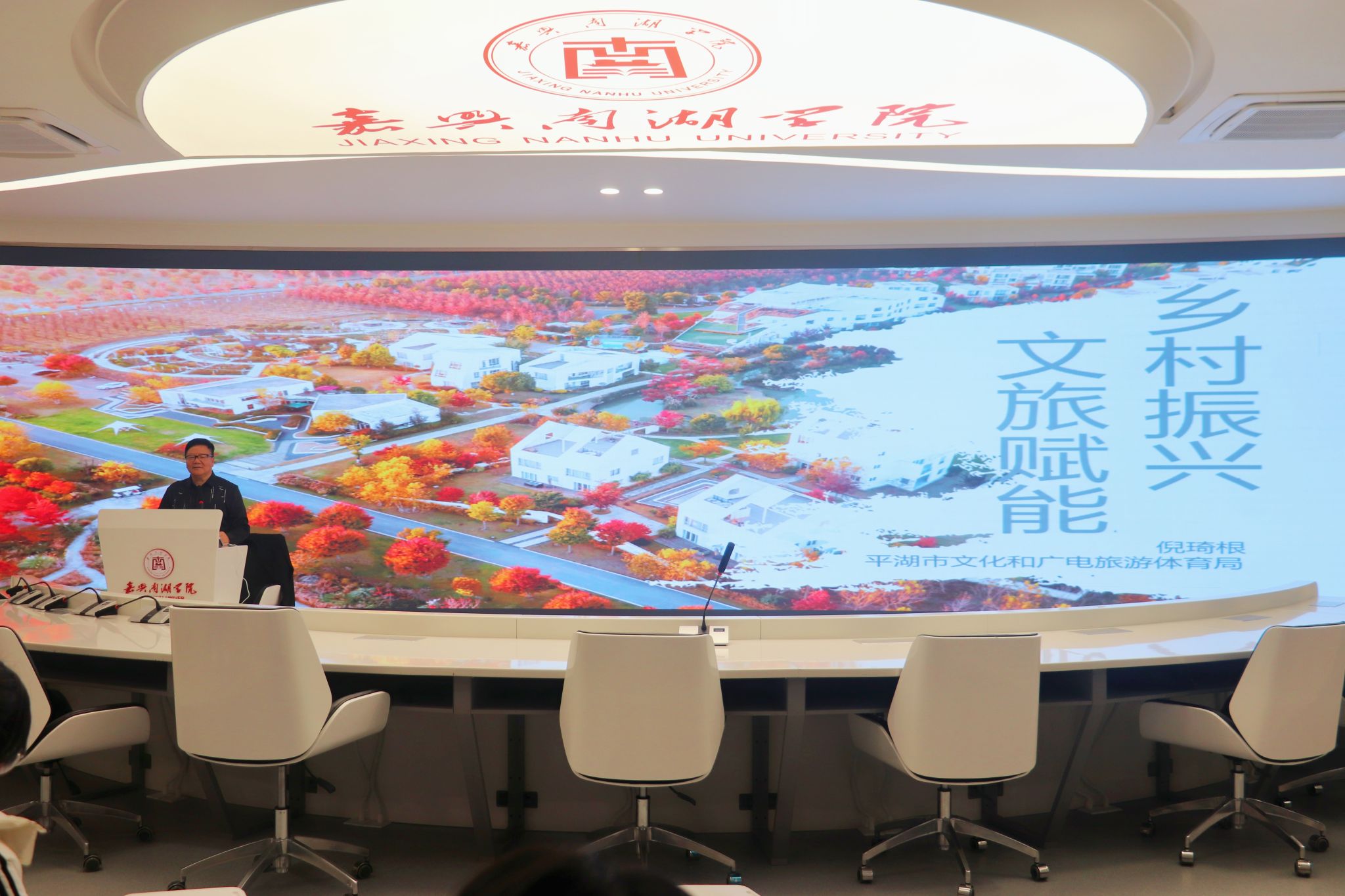 讲座过程中,倪老师以平湖文旅为具体案例,详细且生动地阐述了文旅产业在乡村振兴中的重要作用,并强调文旅融合是乡村振兴的有效路径,要深刻挖掘乡村的人文和自然资源。同时,倪老师还分享了如何利用汉语言文化的独特魅力,如故事、文字等元素,增强乡村旅游的文化内涵和吸引力,让游客在体验中感受乡村文化的魅力。