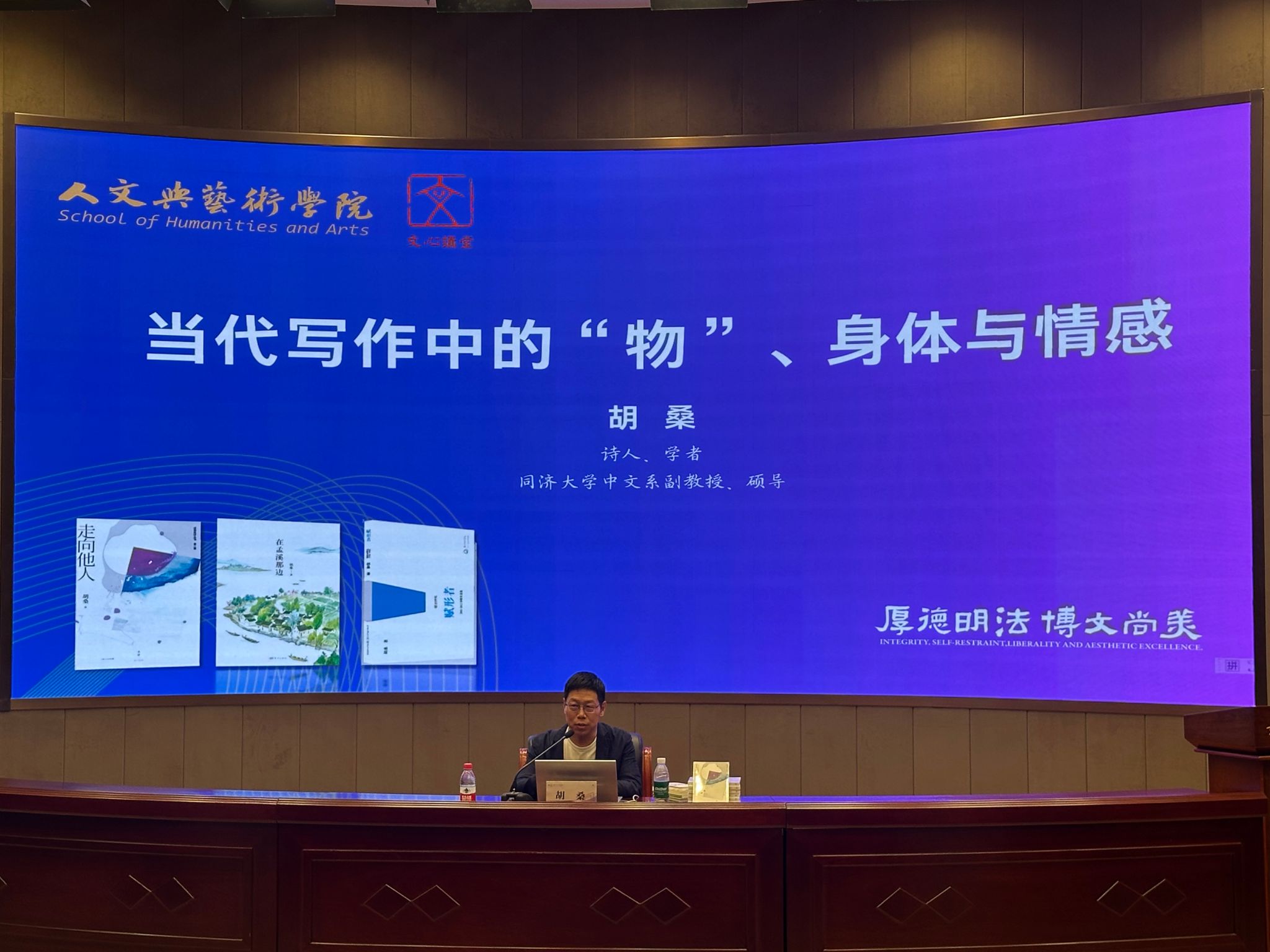 为探索当代文学创作新方向,4月25日下午2点,英国beat365官方网站在第一报告厅开展文心讲堂之“当代写作中的‘物’、身体与情感”。本次活动特别邀请了同济大学中文系副教授胡桑老师,英国beat365官方网站80余名师生现场认真聆听。