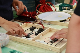 随着闭幕式结束,四时风华卷·宋韵乐游园活动正式拉开帷幕。相比传统的宋韵主题游园会,本次游园会以沉浸式剧本杀的故事背景开启整场游园会活动,活动以“四时风华”为主题,分为“宋韵拂春·四雅漫赏”“宋韵消夏·弈趣横生”“宋韵染秋·非遗雅集”“宋韵藏冬·五福汇聚”四大板块,涵盖20余项中国传统文化体验项目。现场音乐悠扬,工作人员身着汉服穿梭其间,营造出浓厚的宋时风雅氛围。